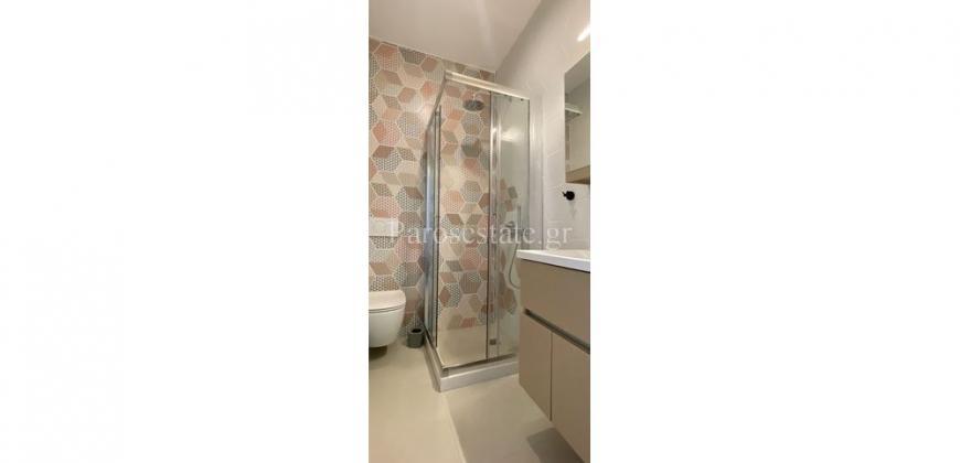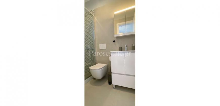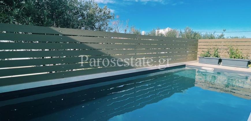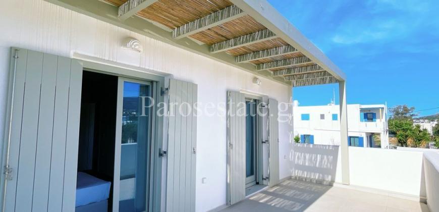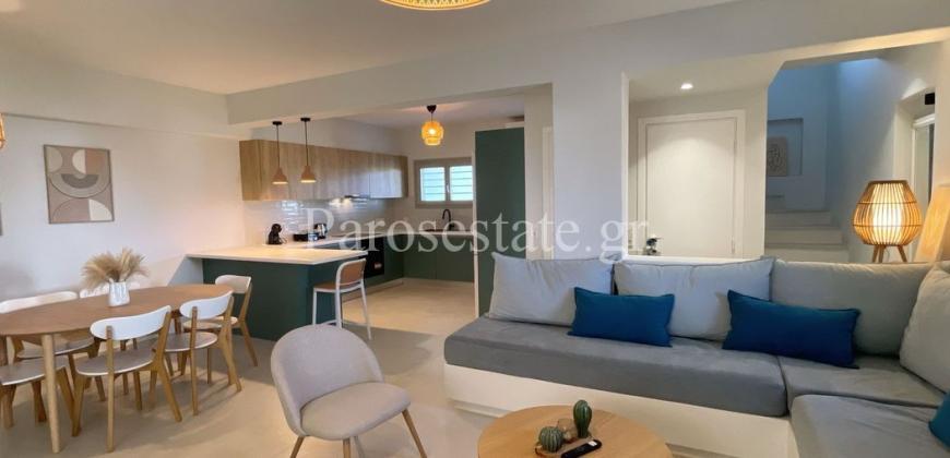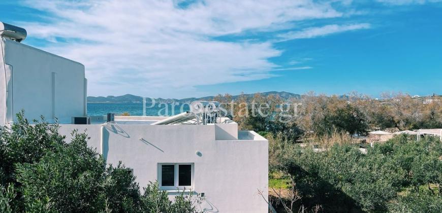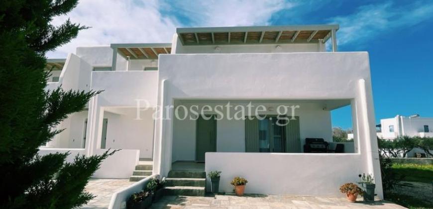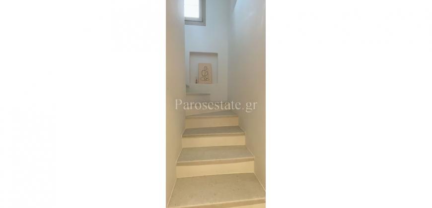 Στο νότιο μέρος της Πάρου, στην περιοχή της Πίσω Αλυκής, με άμεση πρόσβαση στην ομώνυμη χρυσαφένια παραλία, διώροφη κατοικία 123,22μ² σε οικόπεδο αποκλειστικής χρήσης 140,40μ².