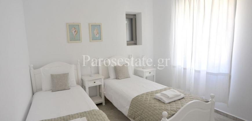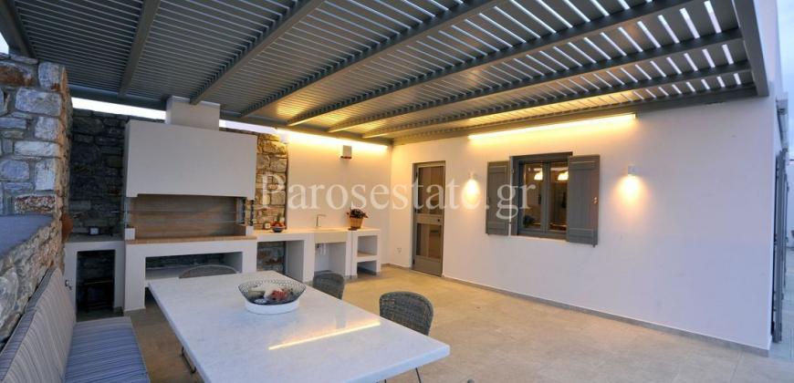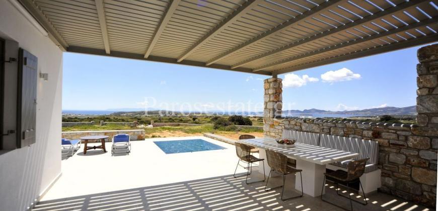 Close to Aliki, newly built ground floor house 159,27m² in land 2841,30m² with view of the sea and the Cycladic landscape.