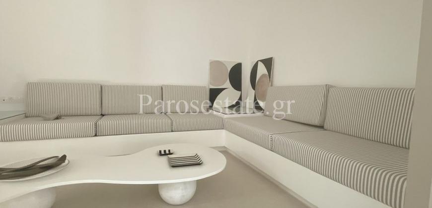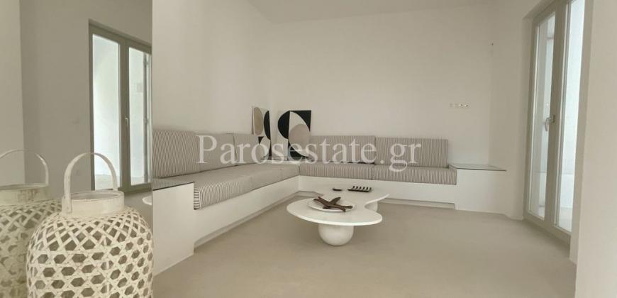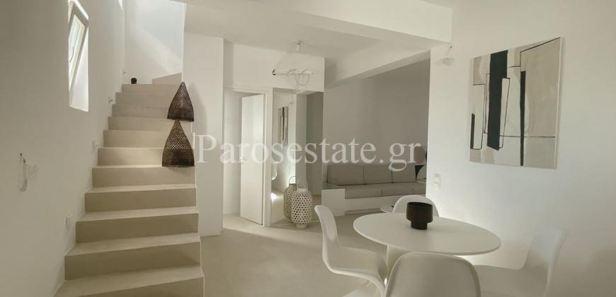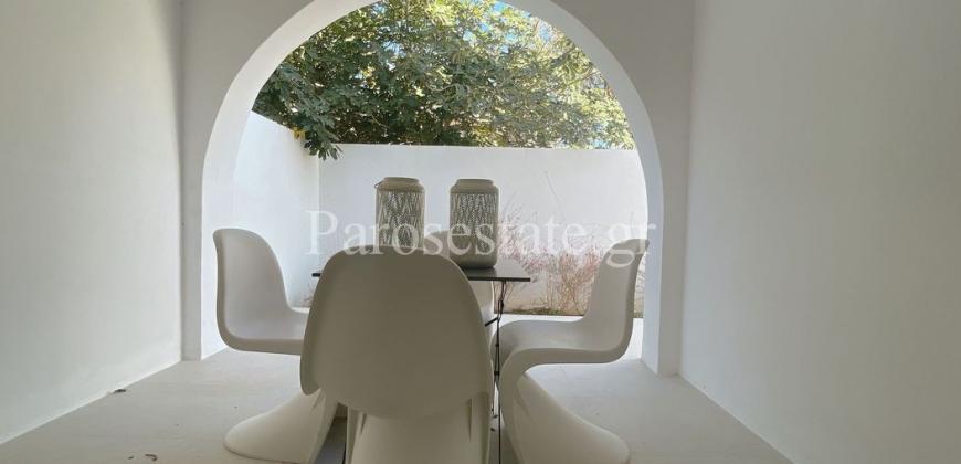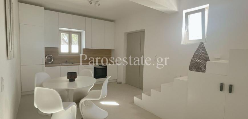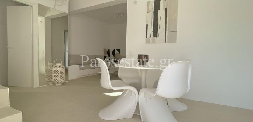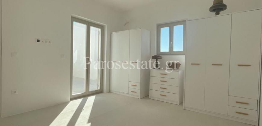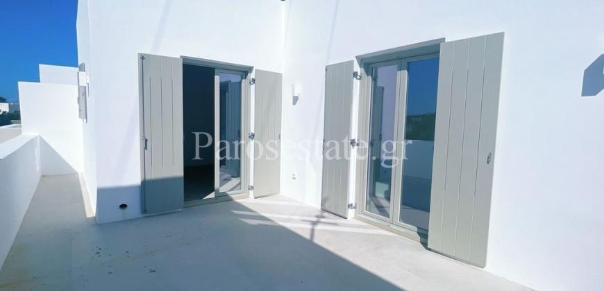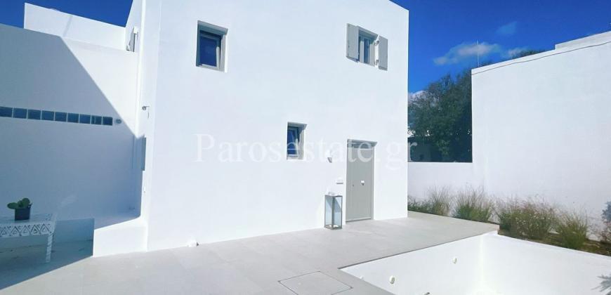 Μέσα στον οικισμό της Αλυκής σε μια ήσυχη γειτονιά, πολύ κοντά στη χρυσαφένια παραλία της, στα γραφικά ταβερνάκια και στα καφέ, βρίσκεται η κατοικία δύο επιπέδων 95,56μ².