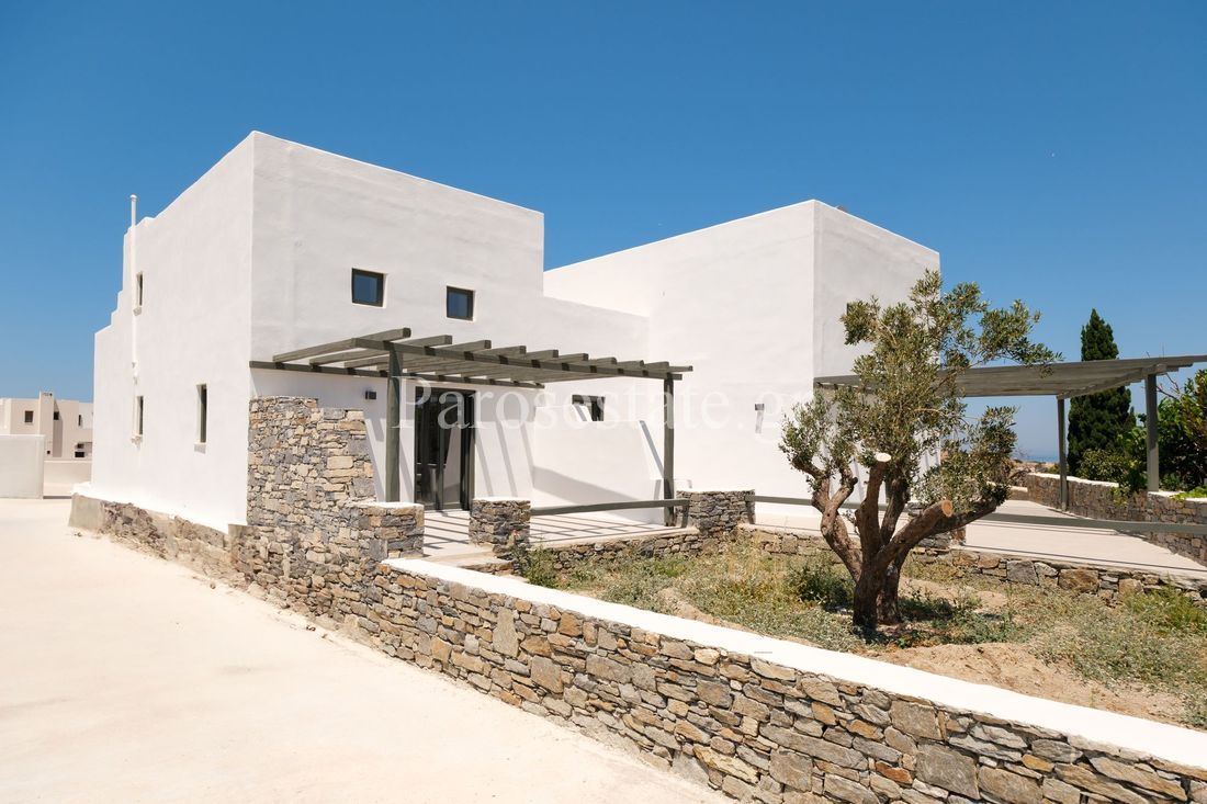 Close to the village Aliki with its picturesque tavernas, the new marina and the 3 sandy beaches Aliki, Agios Nikolaos and Piso Aliki, captivating two level house 140,65m² in a wonderful tree-lined garden with native plants, overlooking the endless blue, the Panteronisia and Antiparos.