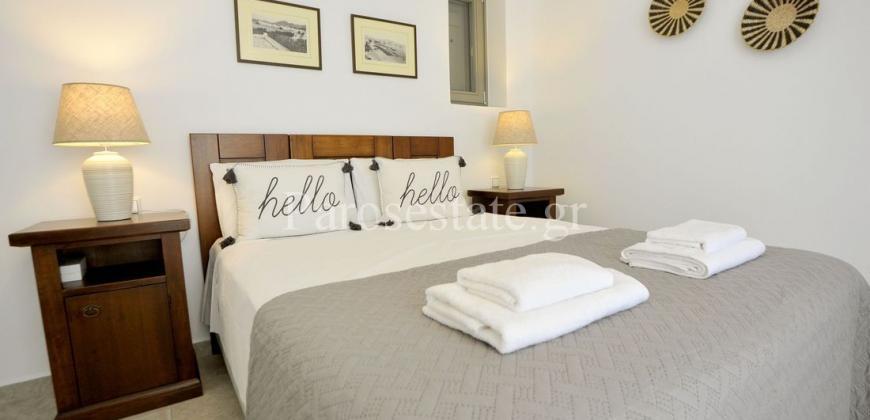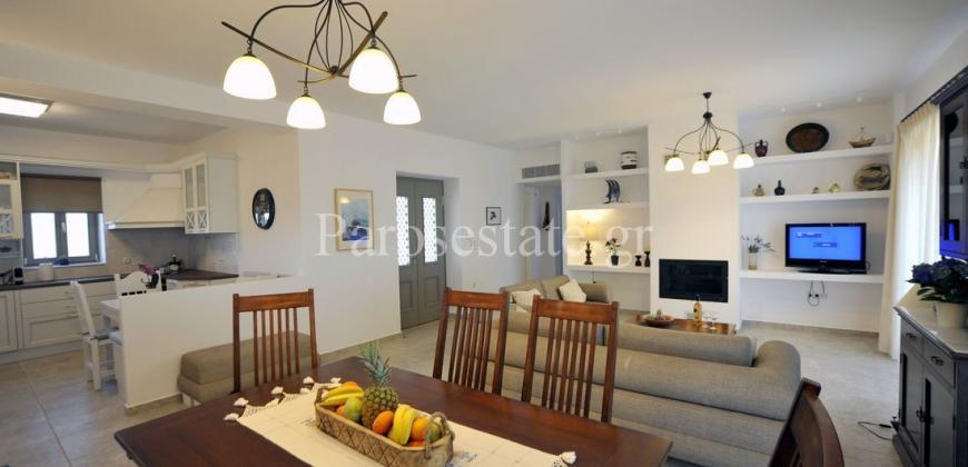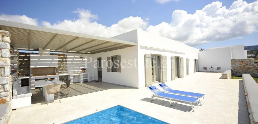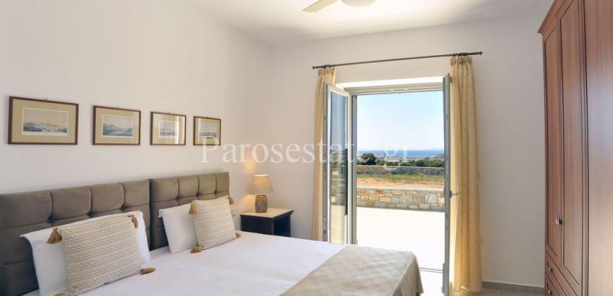 Close to Aliki, newly built ground floor house 159,27m² in land 2841,30m² with view of the sea and the Cycladic landscape.